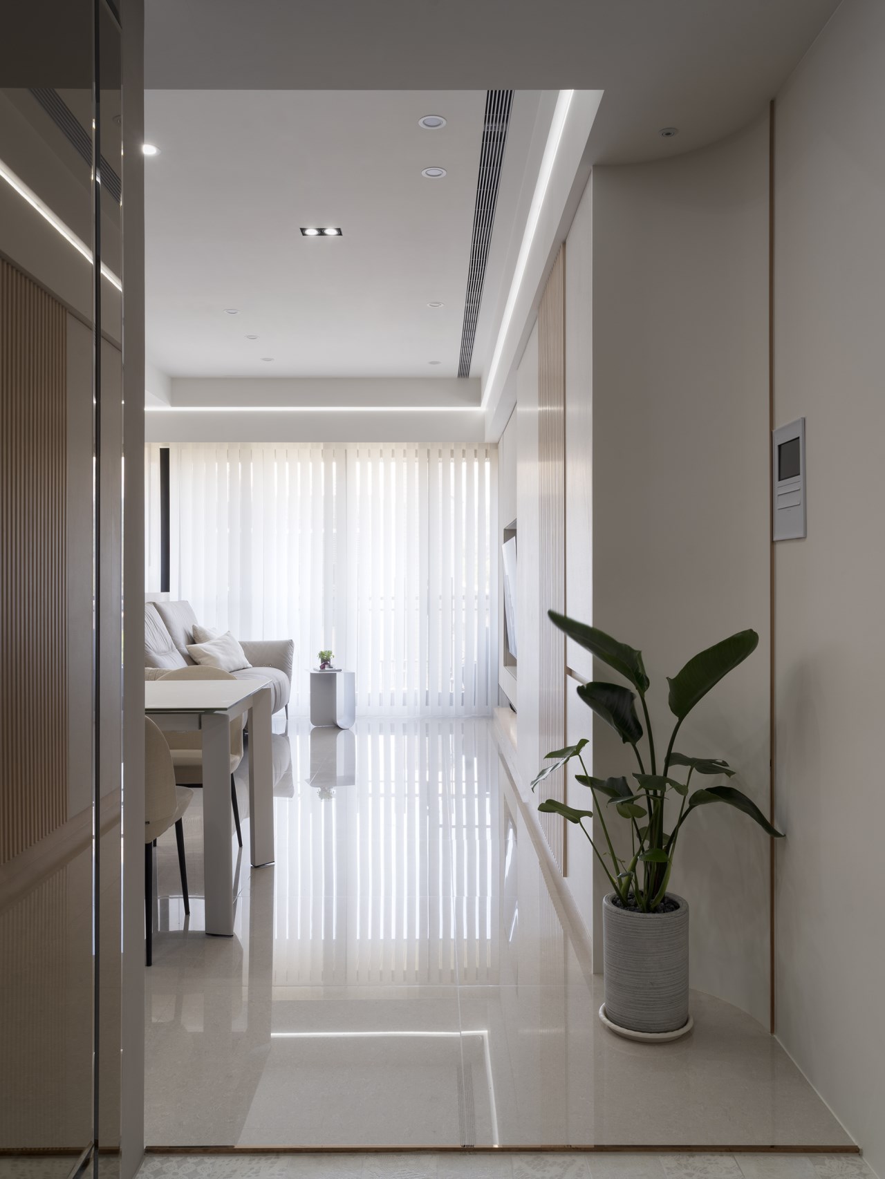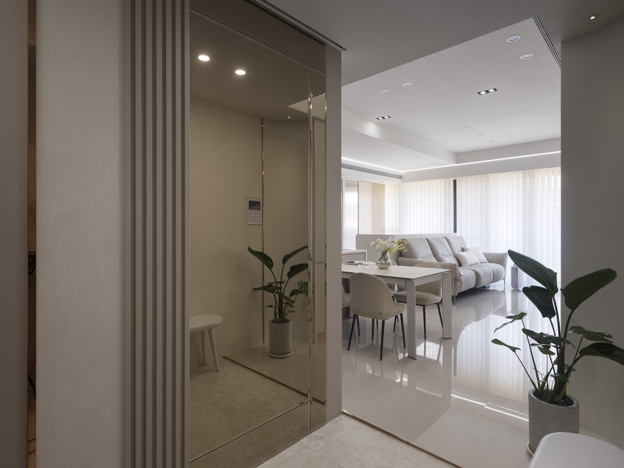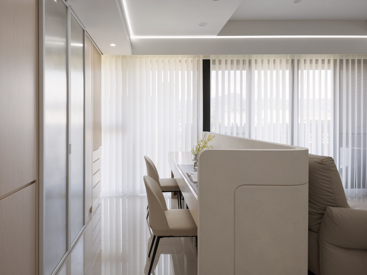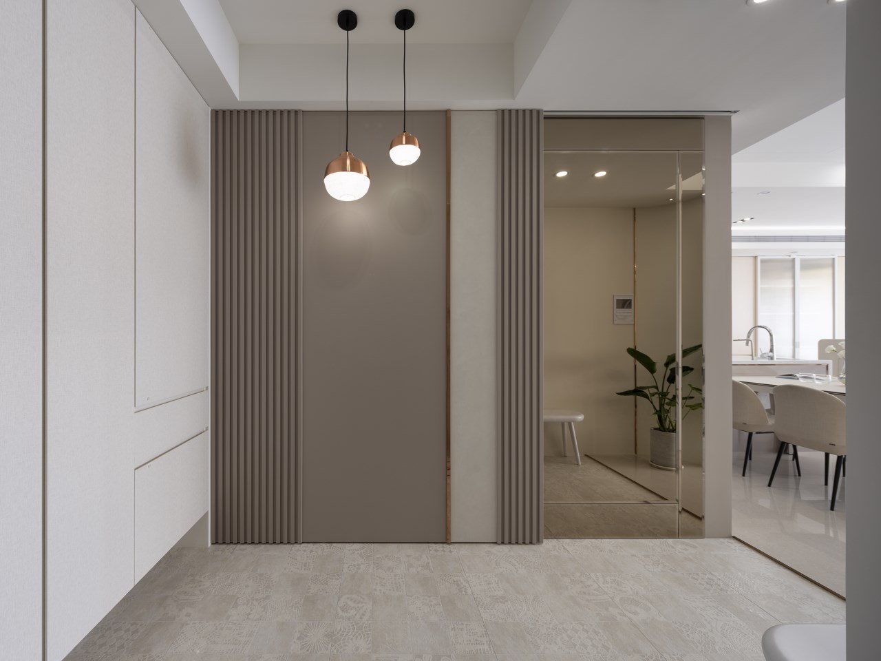 空間坪數 | 25 坪 空間格局 | 玄關、 客廳、 餐廳、 廚房、 開放式書房、 主臥、 主臥更衣室、 主浴、 小孩房、 客用衛浴 主要材料 | 磁磚、 木地板、 木作實木貼皮、 系統櫃、 烤漆、 特殊漆、 人造石、 琺瑯板、 金屬及玻璃類材