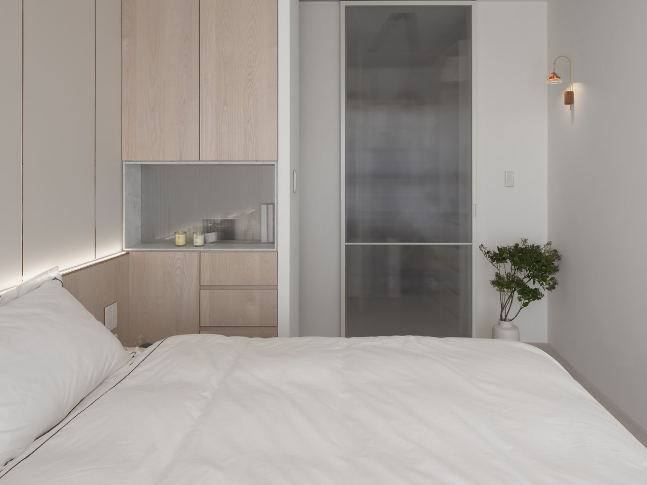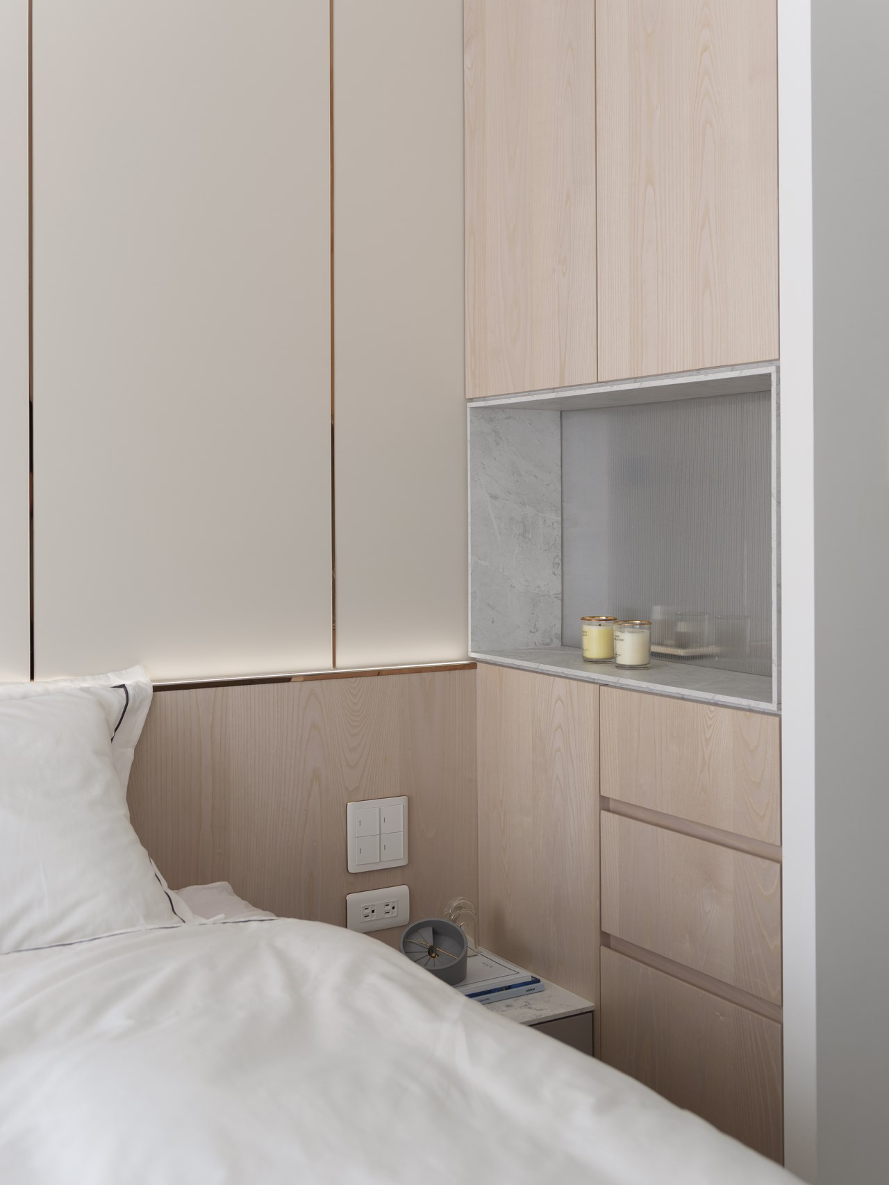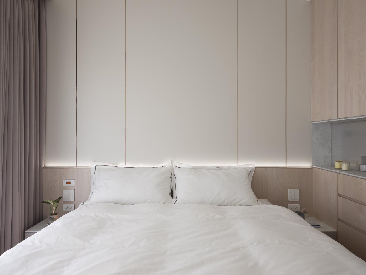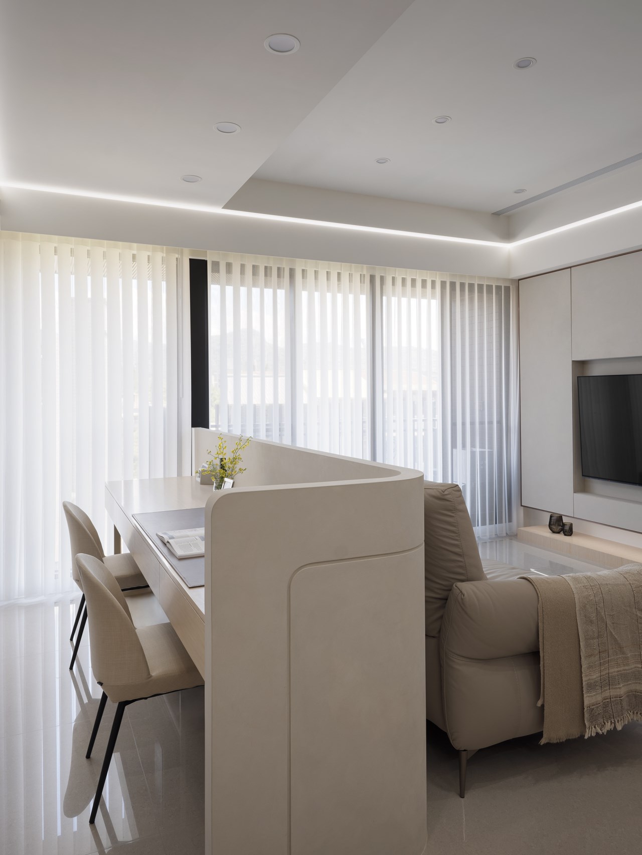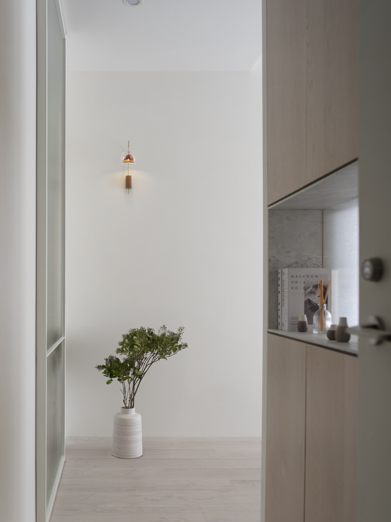 空間坪數 | 25 坪 空間格局 | 玄關、 客廳、 餐廳、 廚房、 開放式書房、 主臥、 主臥更衣室、 主浴、 小孩房、 客用衛浴 主要材料 | 磁磚、 木地板、 木作實木貼皮、 系統櫃、 烤漆、 特殊漆、 人造石、 琺瑯板、 金屬及玻璃類材