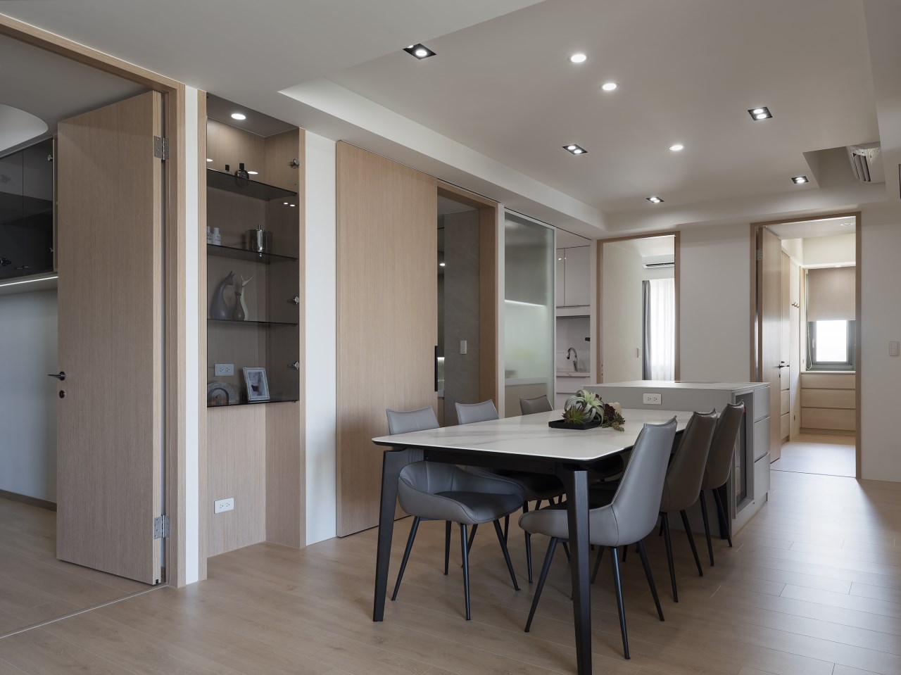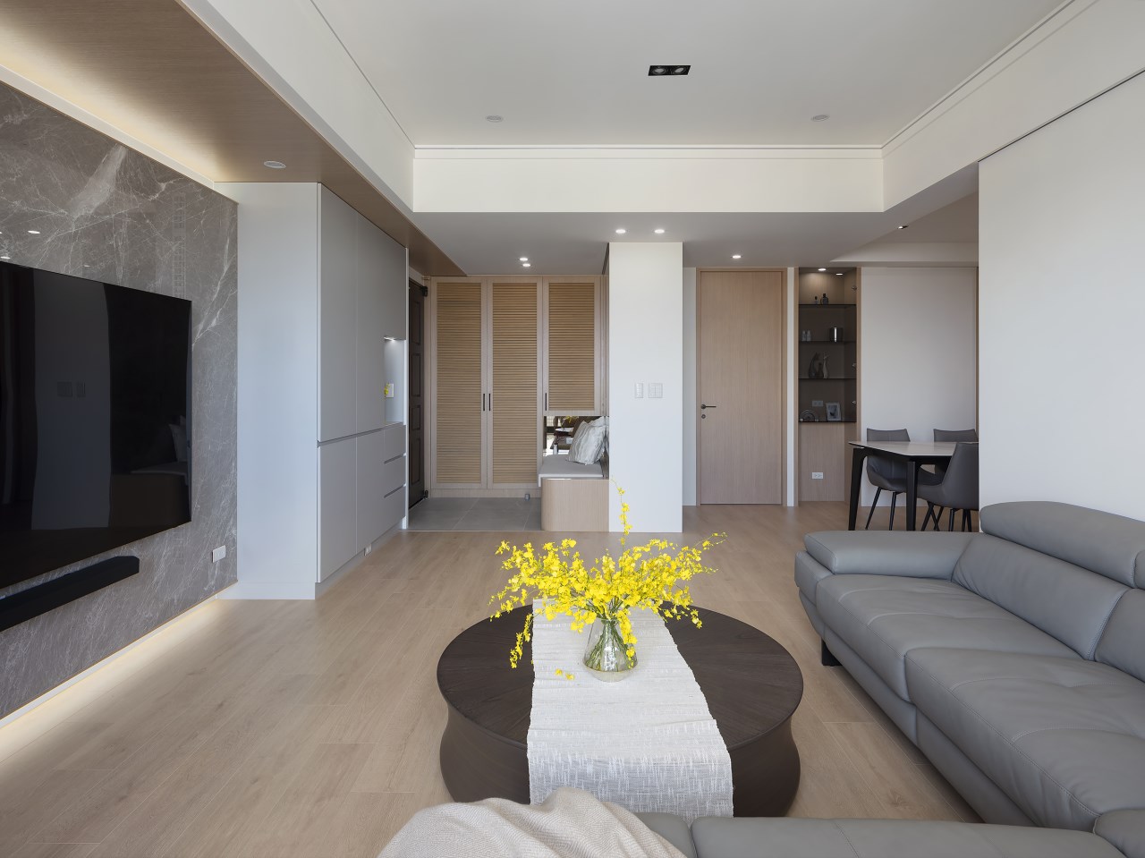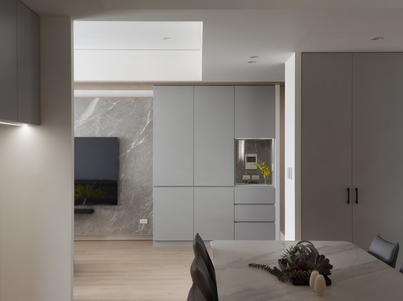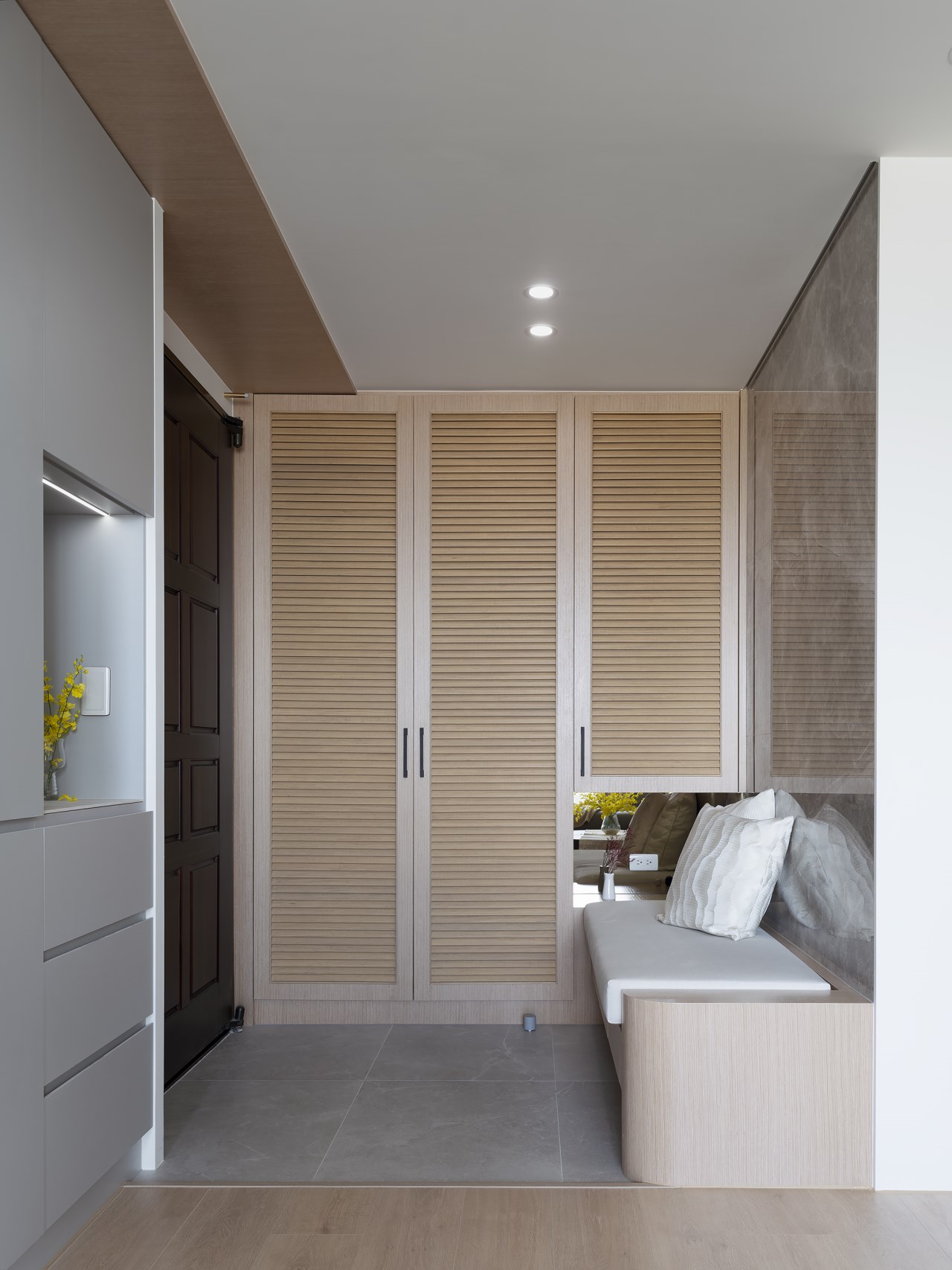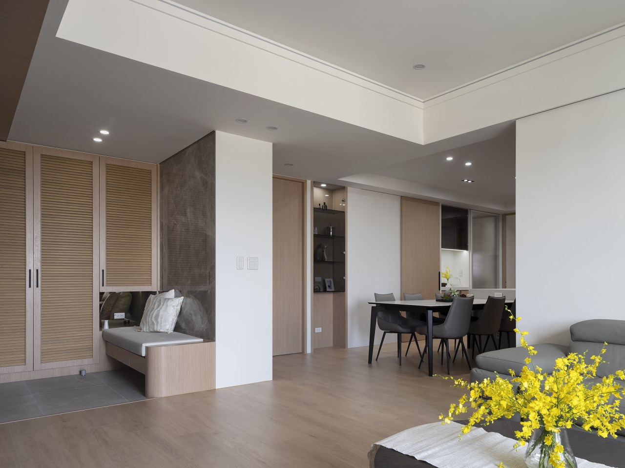 主要材料 | 大理石、 磁磚、 木作烤漆、 木皮、 系統櫃、 繃布、陶板