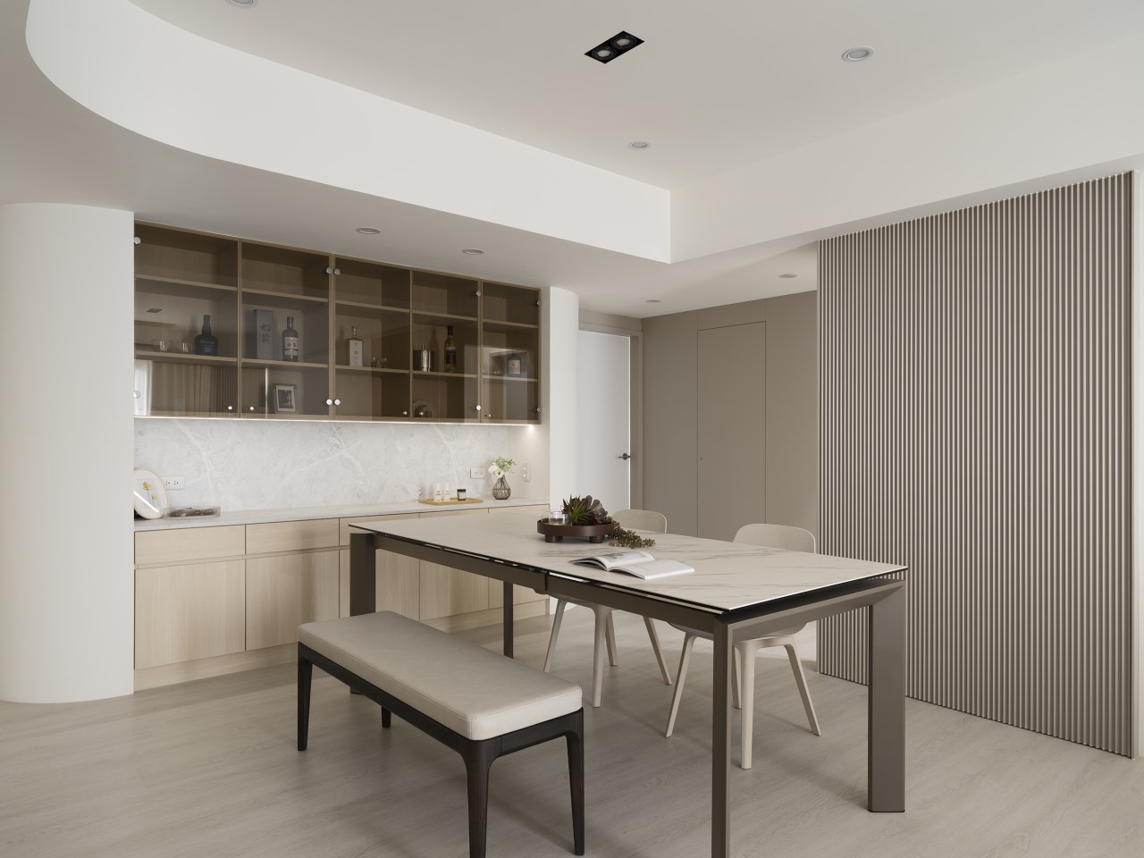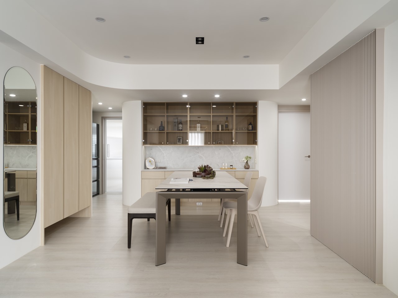 主要材料 | 磁磚、 木作烤漆、 木皮、 系統櫃、 隔柵板