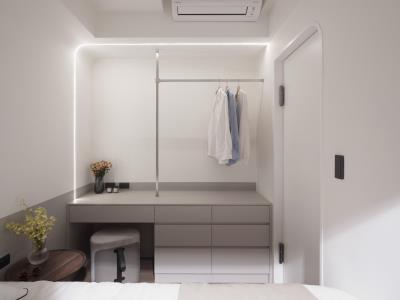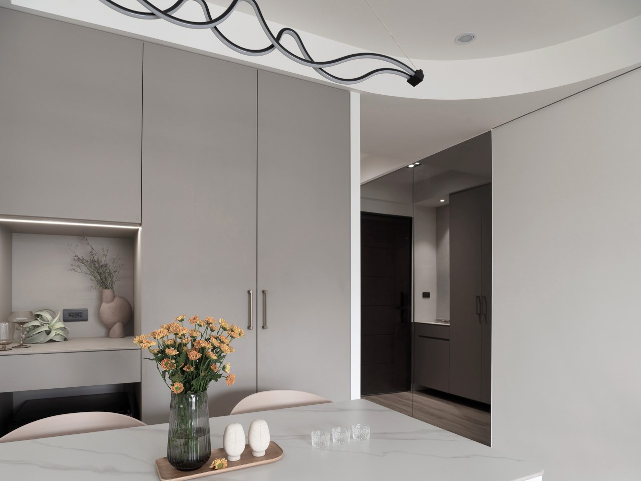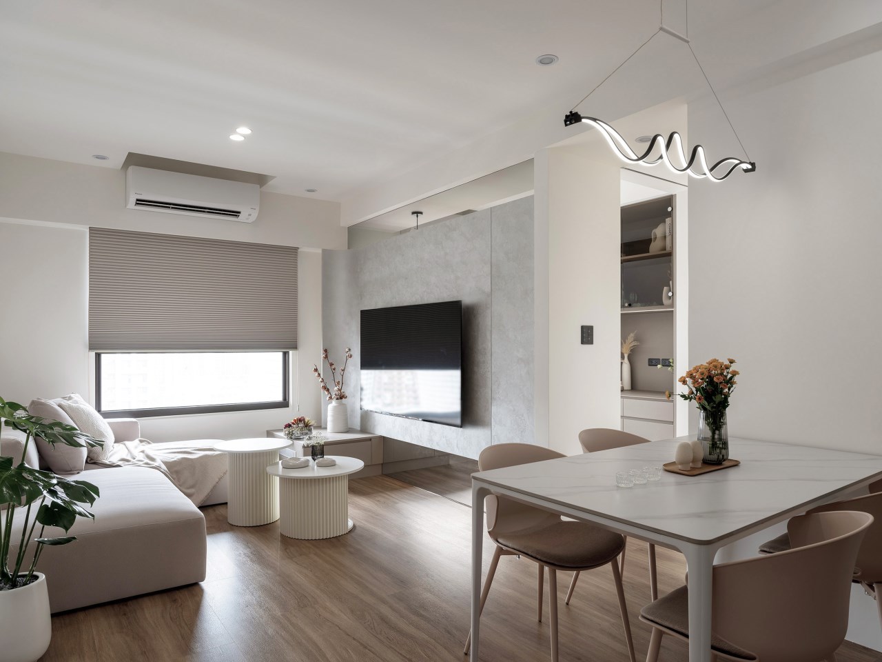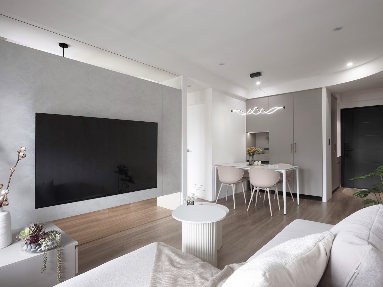 主要材料 | 特殊塗料、超耐磨木地板、木作烤漆、系統櫃、鏡面、噴漆、鍍鈦收邊條、鍍鈦五金