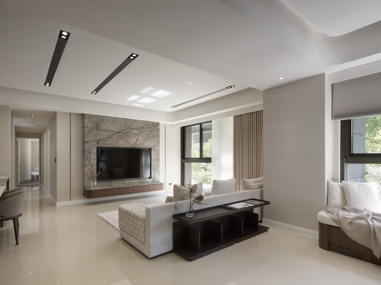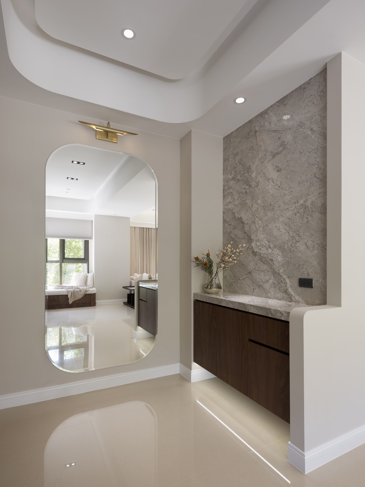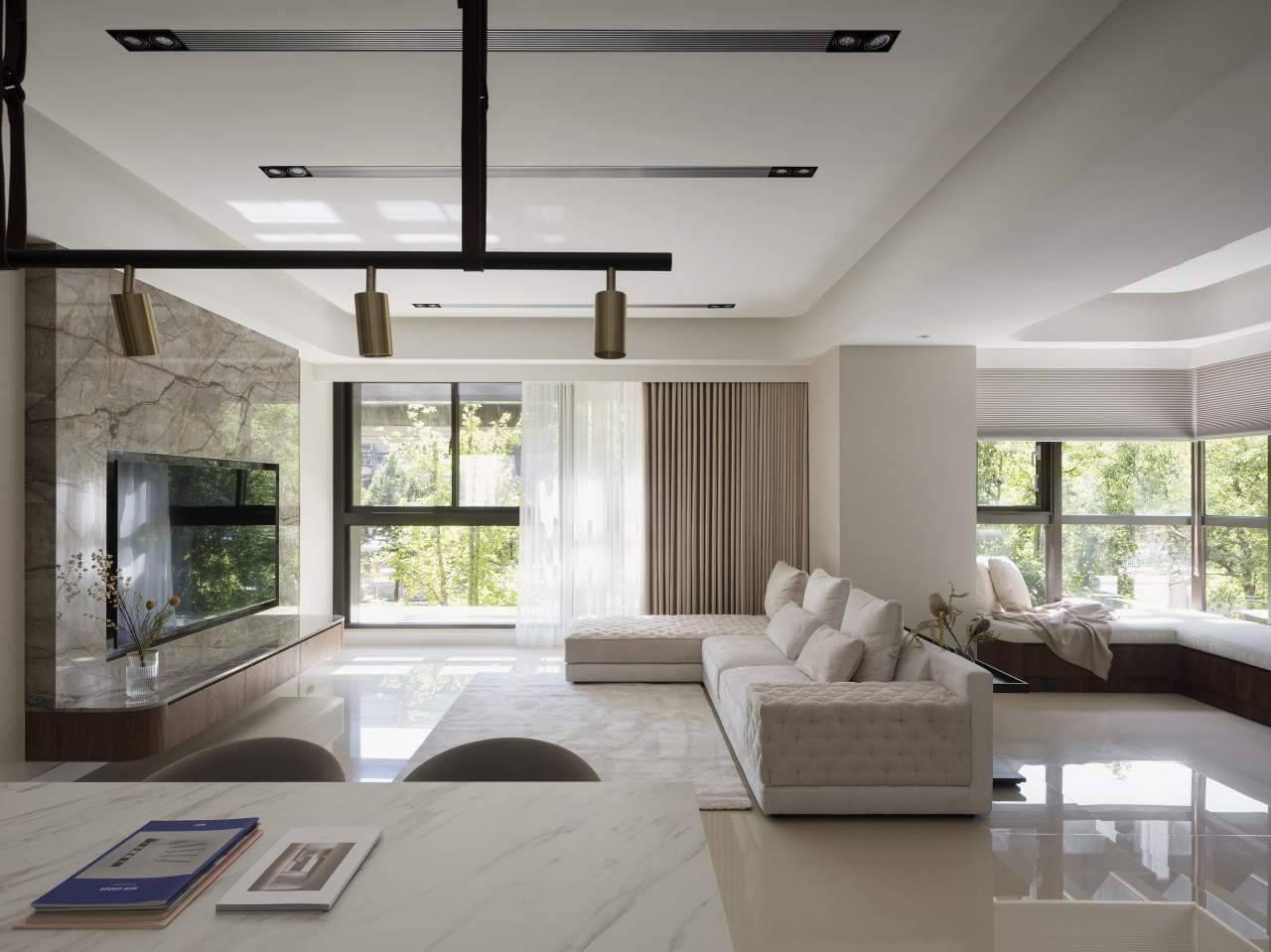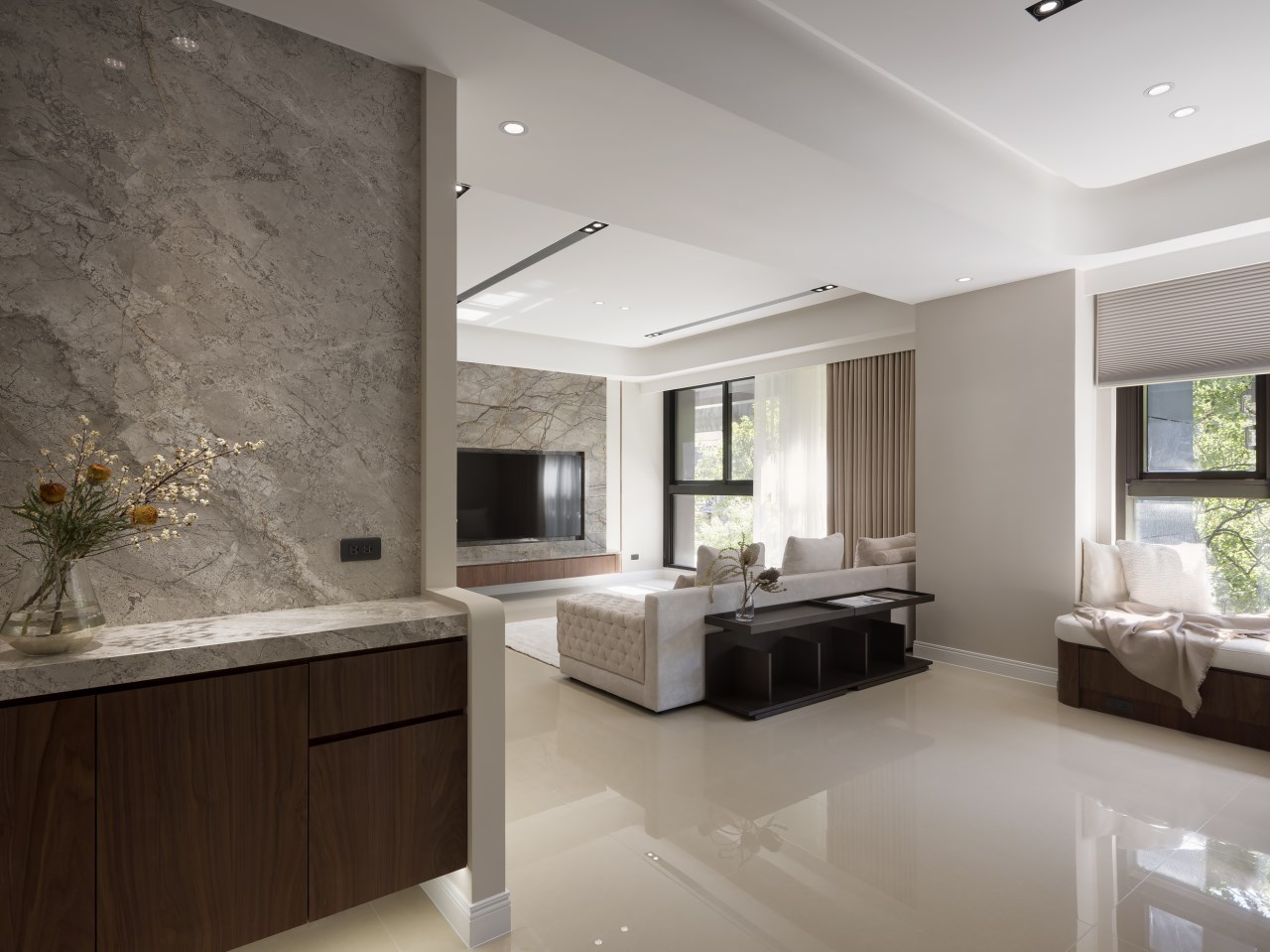 主要材料 | 大理石、木作實木貼皮、壁紙、木地板、烤漆、系統櫃、 人造石、金屬及玻璃類材